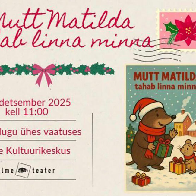 13 detsember 2025 kell 11:00 Jõululugu ühe vaatuses Rae kultuurikeskuses: “Mutt Matilda tahab linna minna” Salme teater